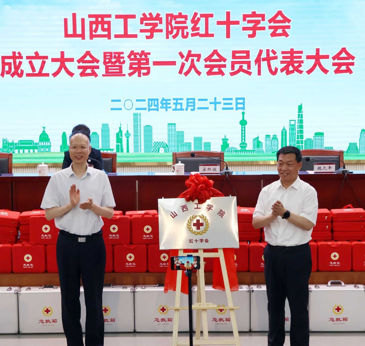 5月23日上午,我校在图书馆1号报告厅召开红十字成立大会暨第一次会员代表大会。朔州市委副书记、政法委书记宋红波,朔州市政府副市长、市红十字会会长魏元平,朔州市委副秘书长樊志文,朔州市教育工委常务副书记王植,朔州市红十字会常务副会长赵霞应邀出席会议。校长吴跃焕,副校长郝根彦出席会议。朔州市红十字会工作人员,学校相关部门负责人、全体辅导员及红十字志愿者代表参加会议。会议由吴跃焕主持。