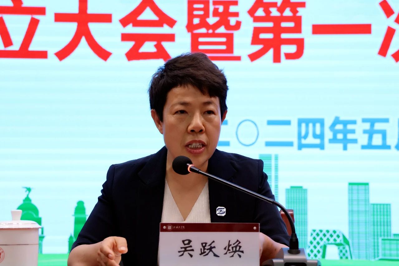 吴跃焕首先代表学校向大会的召开表示热烈祝贺,向出席会议的各级领导和来宾表示诚挚欢迎。她表示,学校红十字会的成立是学校事业发展历程中的一件大事,也是学校加强和改进学生思想道德建设的一项重要举措。希望学校红十字会全体会员和志愿者们在上级部门的指导下,在社会各界的大力支持下,紧扣学校实际、紧贴学生需求,认真践行红十字精神、传播人道主义文化,把红十字工作作为践行社会主义核心价值观的重要抓手,作为实施素质教育、加强和改进新时代大学生生命安全教育的有效途径,积极开展红十字志愿服务,着力推进应急救护知识培训,引领学生敬畏生命、注重健康;引领学生传递温暖、传播善意;引领学生勇于奉献、担当使命,将学校红十字会事业越办越好,为社会公益事业发展作出山工应有的贡献。