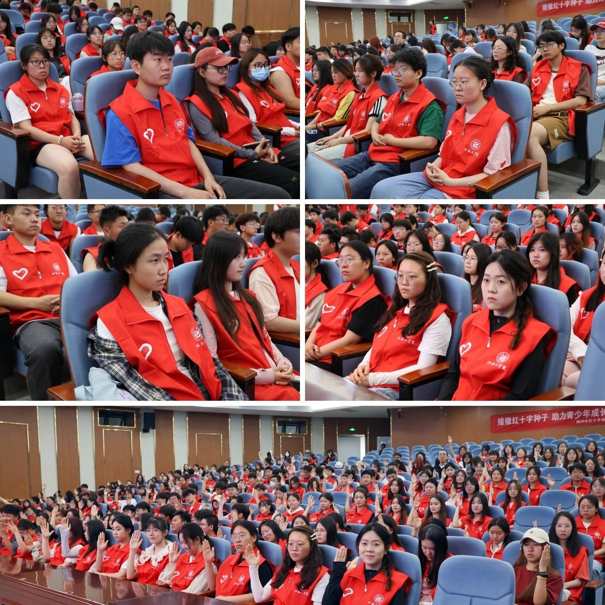 由学校红十字志愿者代表张文涛同学领誓红十字会志愿者宣誓仪式,全体起立进行红十字志愿服务队志愿者集体宣誓。