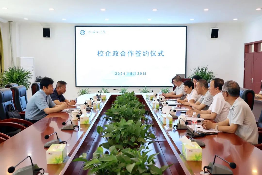 5月30日上午,我校与朔州市城镇集体工业联合社、怀仁市尊屹陶瓷有限公司在治学楼第一会议室举行校企政合作签约仪式。校长吴跃焕,副校长田忠刚,朔州市城镇集体工业联合社党组书记、主任冯佐洲,怀仁市尊屹陶瓷有限公司董事长赵劲松出席签约仪式。我校陶瓷学院院长、智能制造工程学院院长、经济与管理学院院长及教师代表参加会议。仪式由科研与对外合作部负责人李朋伟主持。