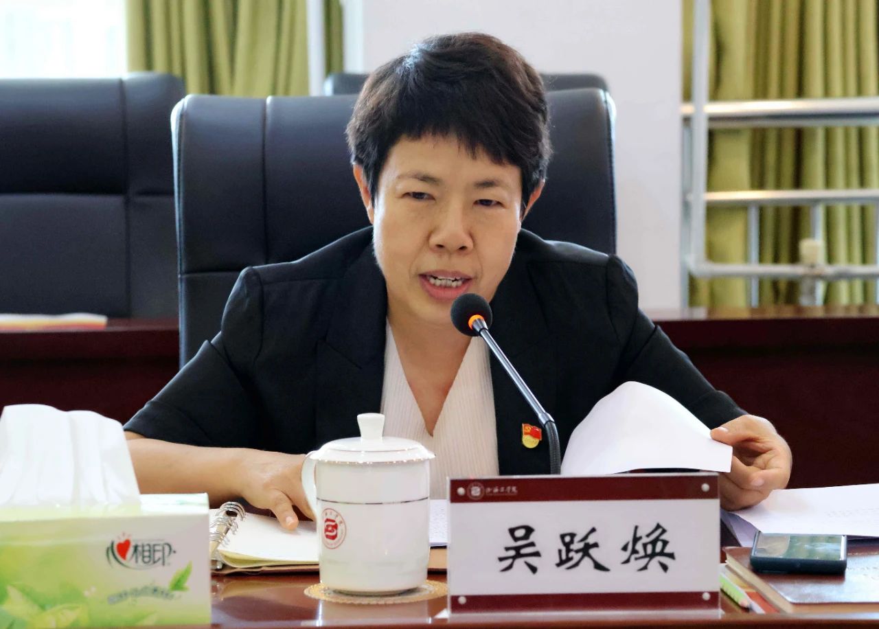吴跃焕在总结讲话中强调,当前,党纪学习教育正处于纵深推进、走深走实的关键时刻,又正逢“七一”临近,各项任务动作密集开展,要紧扣党纪学习教育的目标任务,持续推动学校党纪学习教育走深走实。一要进一步在“学纪”上下功夫,持续推动党纪学习教育入脑入心走深走实。要把深入学习贯彻习近平总书记关于党的纪律建设的重要论述作为重要遵循,在学习党规党纪的过程中注重锤炼工作思维、凝练学习方法,把增强党性、严守纪律、砥砺作风融入日常、化为习惯。二要进一步在“知纪”上下功夫,切实树牢严守纪律规矩的高度政治自觉、思想自觉、行动自觉。纪律严明是党的光荣传统和独特优势。要通过“三会一课”、主题党日、集中研讨、个人自学等形式,深入学习《中国共产党纪律处分条例》,准确掌握《条例》的主旨要义和规定要求,牢固树立起纪律规矩意识,进一步加强自我约束、提高免疫能力,增强政治定力、纪律定力、道德定力、抵腐定力,把遵规守纪刻印在心,始终做到忠诚干净担当。三要进一步在“明纪”上下功夫,清醒认识学校全面从严治党工作的形势挑战。要准确把握领会“六大纪律”的主旨要义和规定要求,进一步明确日常言行的衡量标尺,对每一条纪律都认真钻研、学深学透,既知其言又知其义,既知其然又知其所以然,常敲思想警钟、常紧纪律之弦、常存敬畏之心,恪守“六大纪律”,不断增强忠实履职尽责的思想自觉和行动自觉。四要进一步在“守纪”上下功夫,以纪律建设新成效纵深推动全面从严治党。要始终把纪律和规矩挺在前面,严格遵守党的各项纪律规定,在严格守纪中筑牢底线防线,不断提高政治判断力、政治领悟力、政治执行力,以严明的纪律确保在思想上政治上行动上始终同以习近平同志为核心的党中央保持高度一致,进一步增强坚定拥护“两个确立”、坚决做到“两个维护”的政治自觉、思想自觉和行动自觉。要把从严管理监督和激励担当作为结合起来,把守纪与更好地履职尽责、担当作为紧密结合起来,以铁的纪律凝聚意志、锤炼作风、锻造队伍,护航学校事业行稳致远。