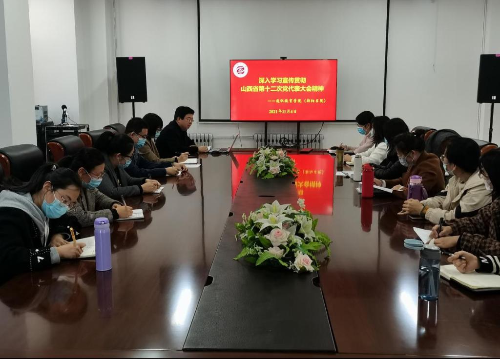 11月4日,在学校治学楼第三会议室我院组织召开“深入学习宣传贯彻山西省第十二次党代表大会精神”专题会,会议由学院院长主持,学院全体教职工参加。