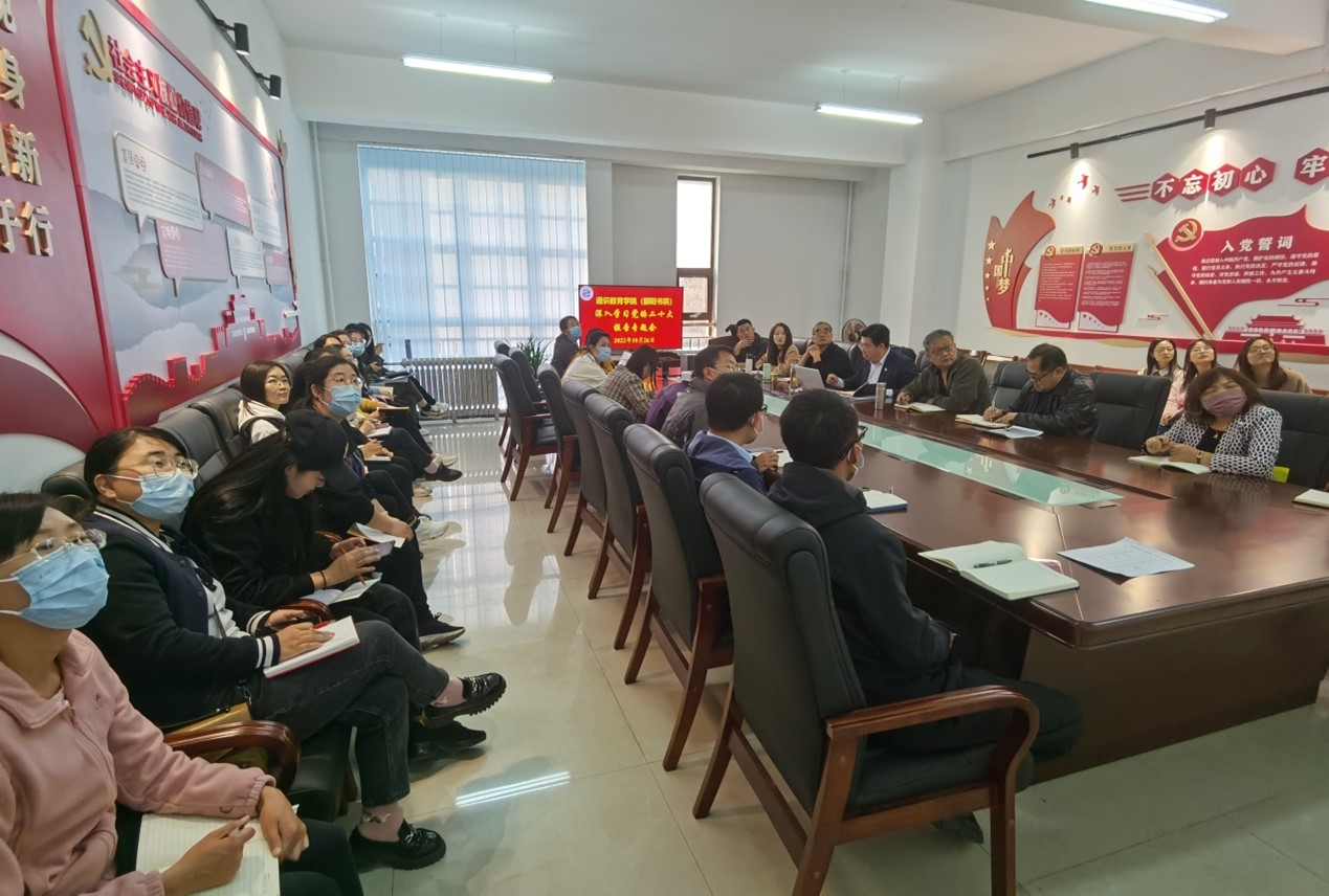 10月26日,通识教育学院召开会议,专题传达学习党的二十大精神并部署安排学习宣传贯彻工作。院长王鸿斌主持会议,学院全体教职工线下线上参加会议。