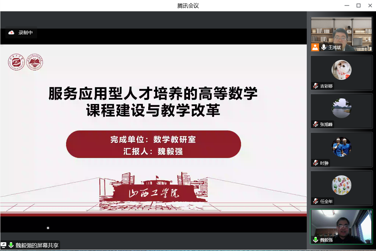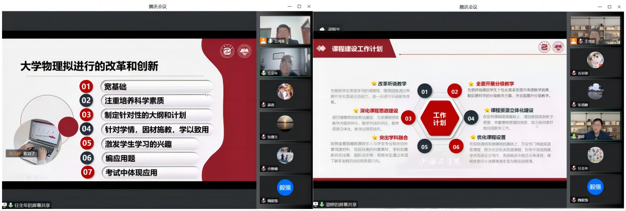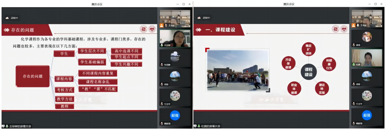 在各教研室前期讨论的基础上,数学组魏毅强教授、物理组任全年副教授、英语组梁婷老师、化学组吉彩婷老师和体育组杜鹃老师分别代表各教研组做了汇报。