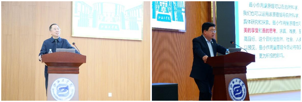 李忱教授从最小作用量原理的基本内涵、其在自然科学和社会科学领域的地位以及其审美评判标准进行了深入浅出的讲解。他指出,最小作用量原理不仅在自然科学领域有其独一无二的位置,是一切其他普通物理定律的基础,在社会科学领域也一样强大,对社会生活的各个方面都有很强的理论指导意义。李忱教授重点从四个方面对最小作用量原理的审美评判标准进行了阐述:最小作用量原理展现的求真之美;最小作用量原理符合逻辑一致性标准;最小作用量原理展现的形式美;最小作用量原理符合数学化标准。李忱教授既从物理数学方面验证,又从现实生活实证举例,生动阐释了最小作用量原理所带来的“真的追求” “美的享受”和“善的思考”。