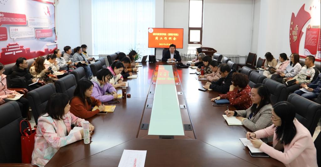 4月20日,通识教育学院在博学楼B203组织召开学院周工作例会,学院全体教职工参会,会议由通识教育学院院长王鸿斌教授主持。