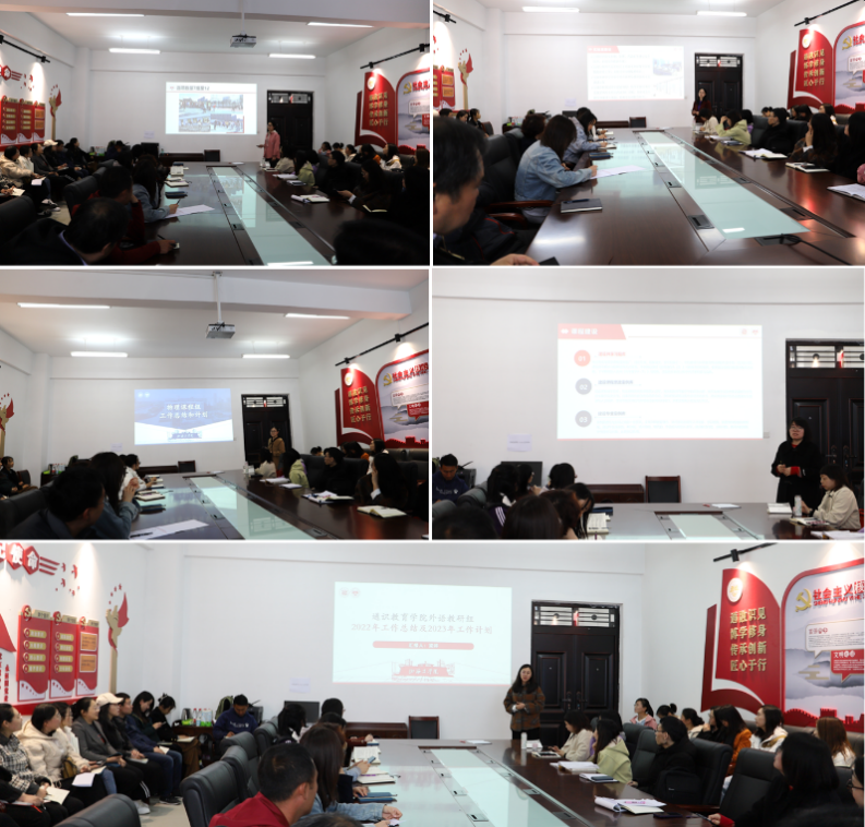 各课程组分别从日常工作、课程体系建设、教学研究工作、教材建设、课程建设、教师发展和实验室建设等方面对过去一年的工作进行了梳理和总结,重点从这几个方面对2023年的工作进行了计划,并制定了具体的目标和任务。各课程组表示,要在现有成绩的基础上,拓宽思路,将各项工作内容再细化,举措再精准化,努力实现各项目标任务高质、高效达成。王鸿斌从学院层面,对学院过去一年的工作进行了简要总结并结合各课程组的工作计划对学院下一年的工作进行了部署。