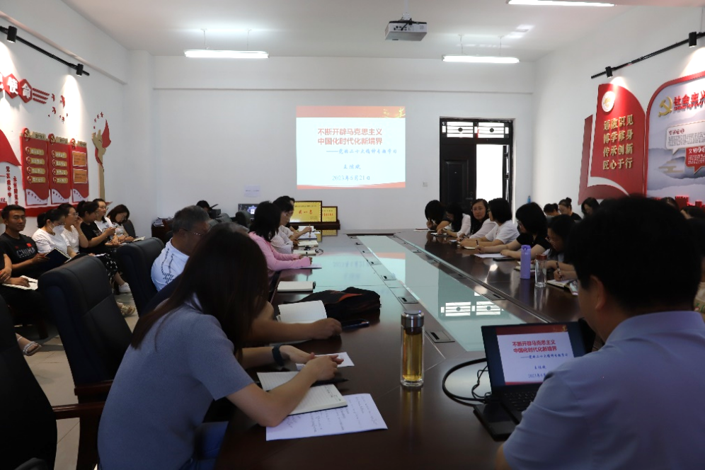 会上,王鸿斌以“不断开辟马克思主义中国化时代化新境界”为题,从历史发展、哲学逻辑和实践成果的角度,用生动鲜活的事例,带领与会教师学习领会“中国共产党为什么能,中国特色社会主义为什么好,归根到底是马克思主义行,是中国化时代化的马克思主义行”这一论述,深刻阐释马克思主义中国化的科学内涵和重要意义。王鸿斌指出,提出“开辟马克思主义中国化时代化新境界”的重大命题,是党的二十大报告的一个重要内容和突出亮点。认真学习领会这个重大命题,对深入学习贯彻习近平新时代中国特色社会主义思想,把握好这一思想的主要内容和蕴含其中的世界观和方法论,不断谱写马克思主义中国化时代化新篇章,具有十分重大的理论意义和实践意义。