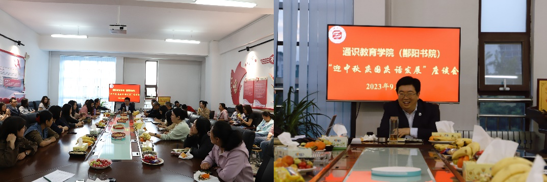 金秋九月,丹桂飘香。值中秋、国庆双节来临之际,9月27日下午,通识教育学院在博学楼B203组织召开“迎中秋 庆国庆 话发展”座谈会。学院全体教职工欢聚一堂,重温来时路,展望新征程。会议由通识教育学院院长王鸿斌主持。