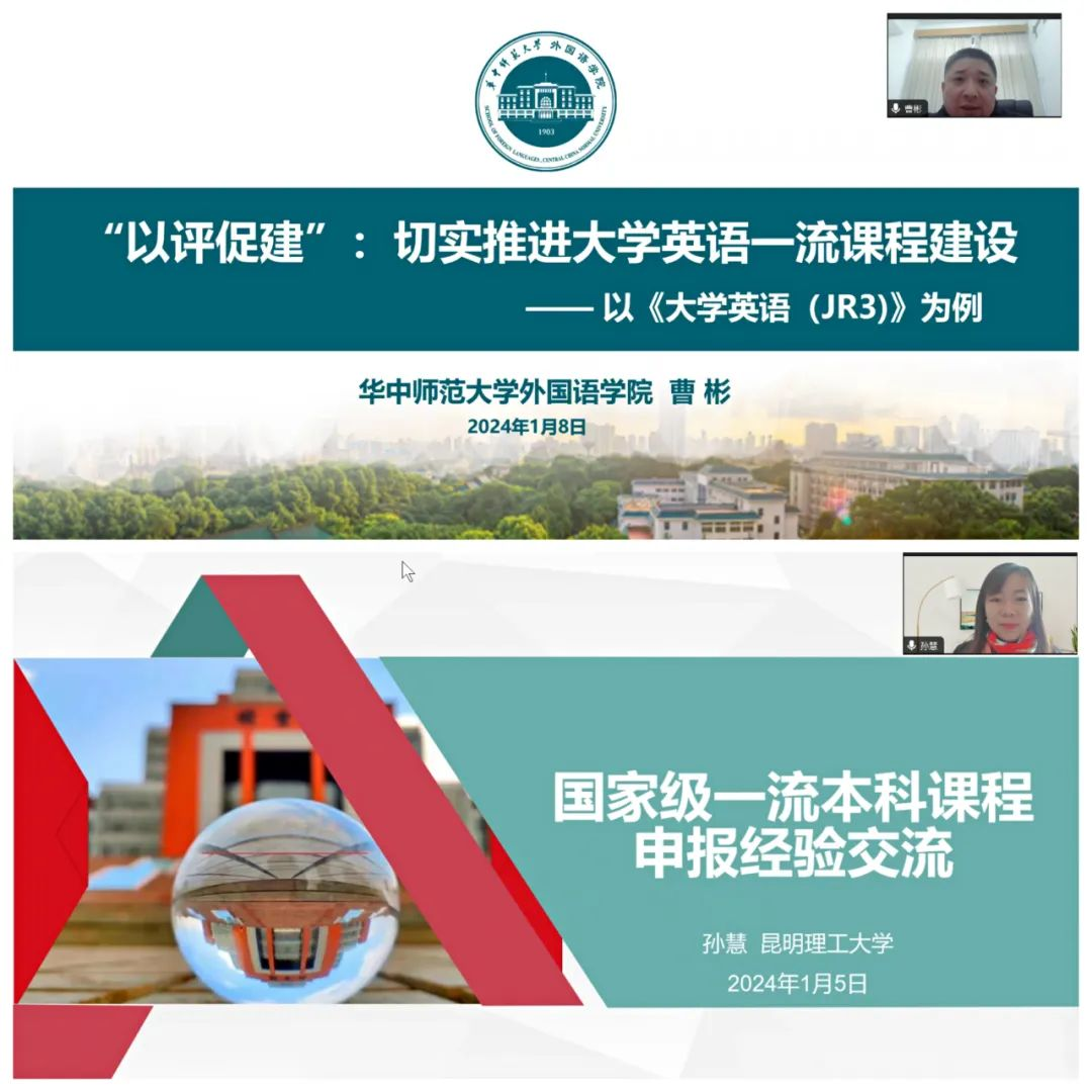 为进一步推动我院一流课程建设和第三批国家级一流本科课程申报工作,近日,学院分别邀请华中师范大学外国语学院副院长、国家级一流本科课程负责人曹彬教授,昆明理工大学外国语言文化学院教师、国家级一流课程负责人孙慧副教授,就申报工作作线上指导。会议由院长王鸿斌主持,学院教职工参加。