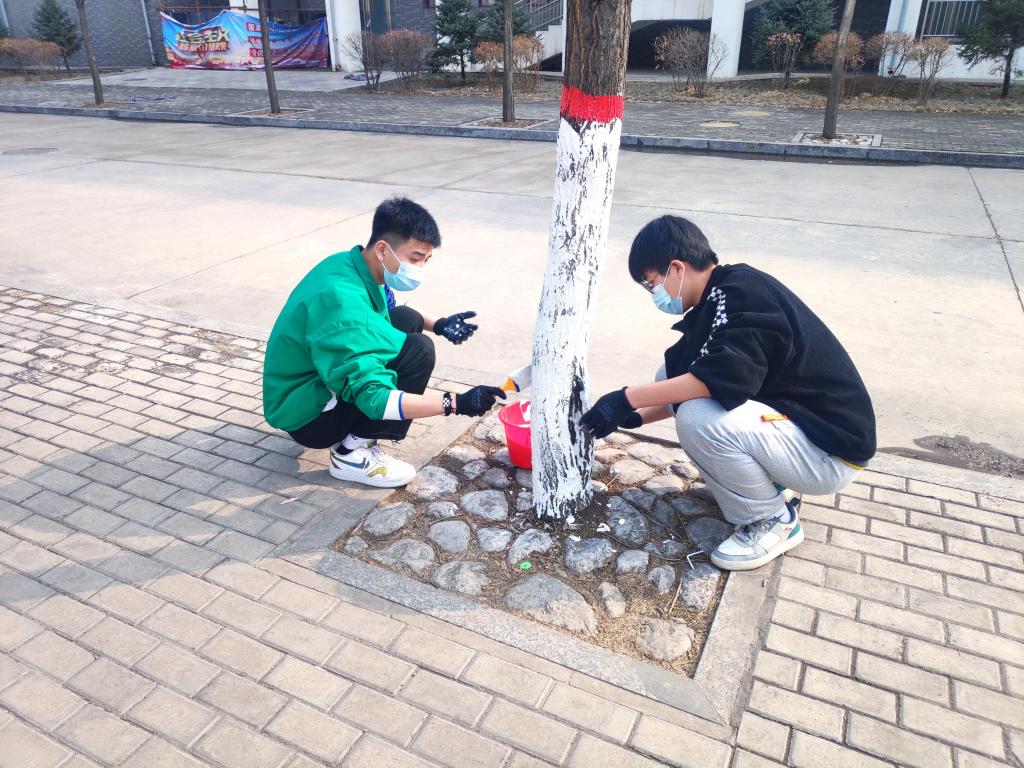 阳春三月,万物复苏,大地上的每一个角落都充满了春天的气息。3月12日下午,我院学子通过给学校主干道两旁树干刷石灰水的方式庆祝植树节。