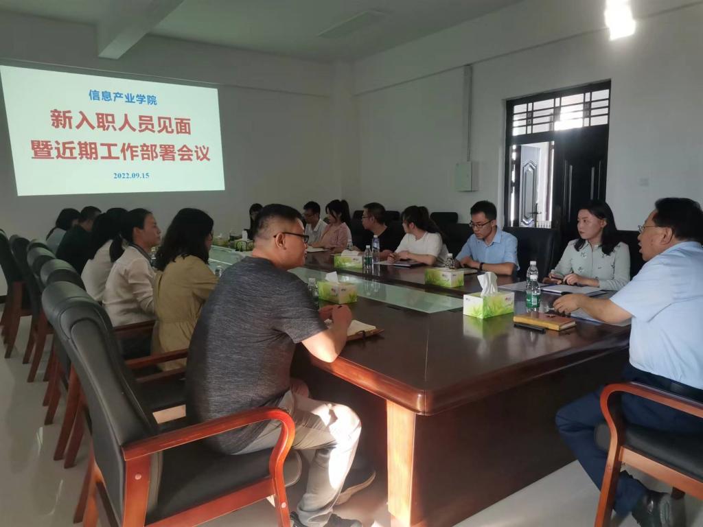 金秋送爽,在2022级新生即将入学之际,信息产业学院于9月15日下午召开新入职人员见面暨近期工作部署会议,由王晓凯院长主持,全院教师、辅导员、教辅人员及全体新入职人员参加了会议。