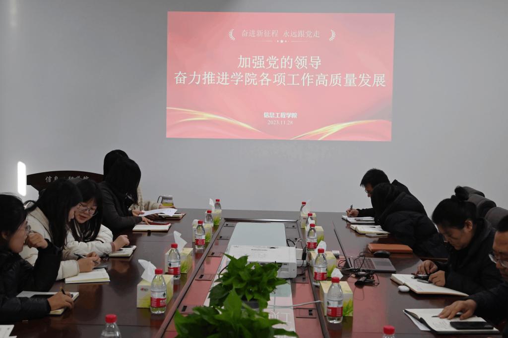 11月28日,信息工程学院召开题为“加强党的领导 奋力推进学院各项工作高质量发展”工作会议,由王晓凯院长主持,全体教职工参加。校党委副书记孙刚同志参加会议。