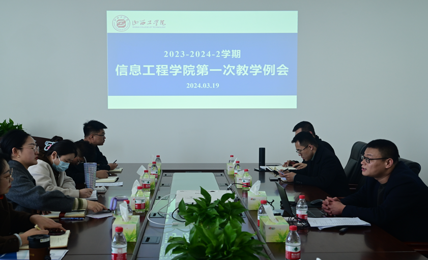 为贯彻落实学校“狠抓工作落实”的要求,信息工程学院于2024年3月19日下午3点在博学楼B403会议室召开2023-2024-2学期第一次教学例会,会议由教学科研负责人韩鹤主持,学院各教研室主任以及各部门负责人参会,会议共有三项议程。
