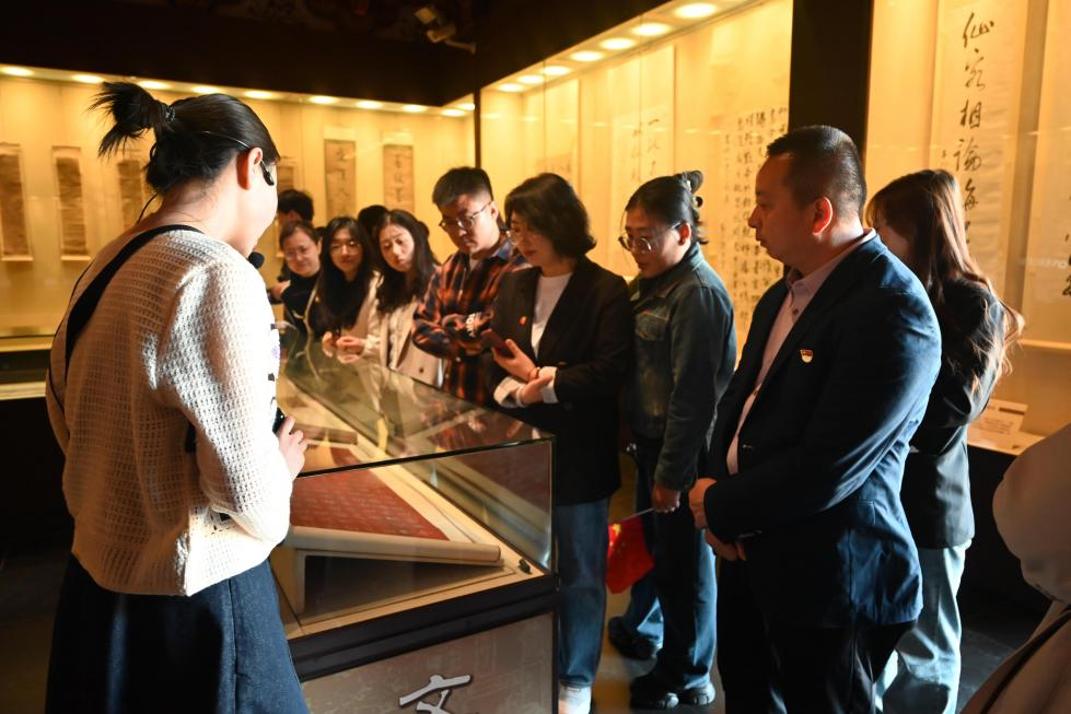 马邑博物馆是国家三级博物馆,山西省爱国主义教育基地,作为展示当地历史文化的重要窗口,馆内陈列着丰富的历史文物和珍贵的文献资料。活动中,党员们怀着崇敬的心情,依次参观了字画厅、造像厅、陶瓷厅等7个展厅,特别是镇馆之宝国家一级文物北魏曹天度千佛石塔塔刹。大家跟随工作人员认真聆听讲解、仔细观看展品,不时驻足思考,深受触动,仿佛穿越时空,回到了那个波澜壮阔的年代,亲身感受厚重的“马邑文化”。