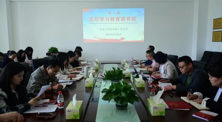 为深入学习贯彻习近平新时代中国特色社会主义思想,认真学习《中国共产党纪律处分条例》(以下简称《条例》),按照学院党总支的安排和部署,信息工程学院教工党支部举行“党纪学习教育第一期读书班”。读书班采取集中研学、领读学习、个人自学等方式进行。