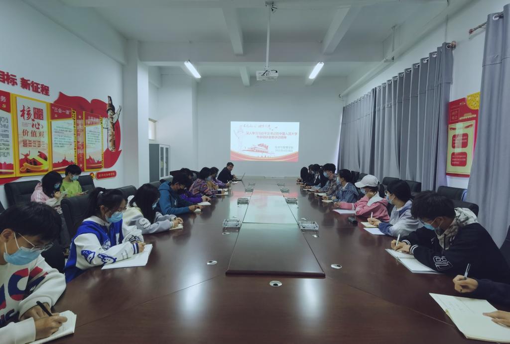 在会上,学院党务临时负责人与参会师生共同学习了习近平总书记考察调研中国人民大学的重要讲话精神。
