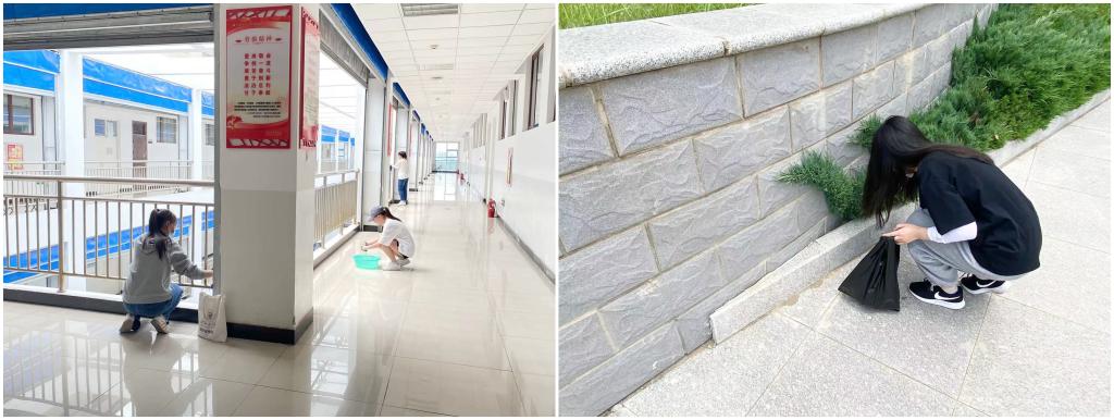 随后,志愿者们在明确区域与任务的情况下,迅速进入状态,对自己所负责的区域进行打扫与擦洗。志愿者们不怕苦不怕累,对各种细微的垃圾、杂物等进行了彻底清理,不留卫生死角,不勉强应付。大家都积极主动、干劲十足,认真负责、一丝不苟,将青年人勤劳的风采与服务意识充分展现出来,同时体现了劳动是伟大的、光荣的,辛劳和汗水的付出,最终让大家收获并创造了一个更好的学习环境。