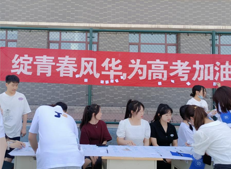 此外,我院还制作宣传横幅“绽青春风华,为高考加油”悬挂于操场西侧,同时创建了便签墙,志愿者及相关负责人给同学们发放便签,为即将高考的学弟学妹们寄语,现场气氛十分热烈。
