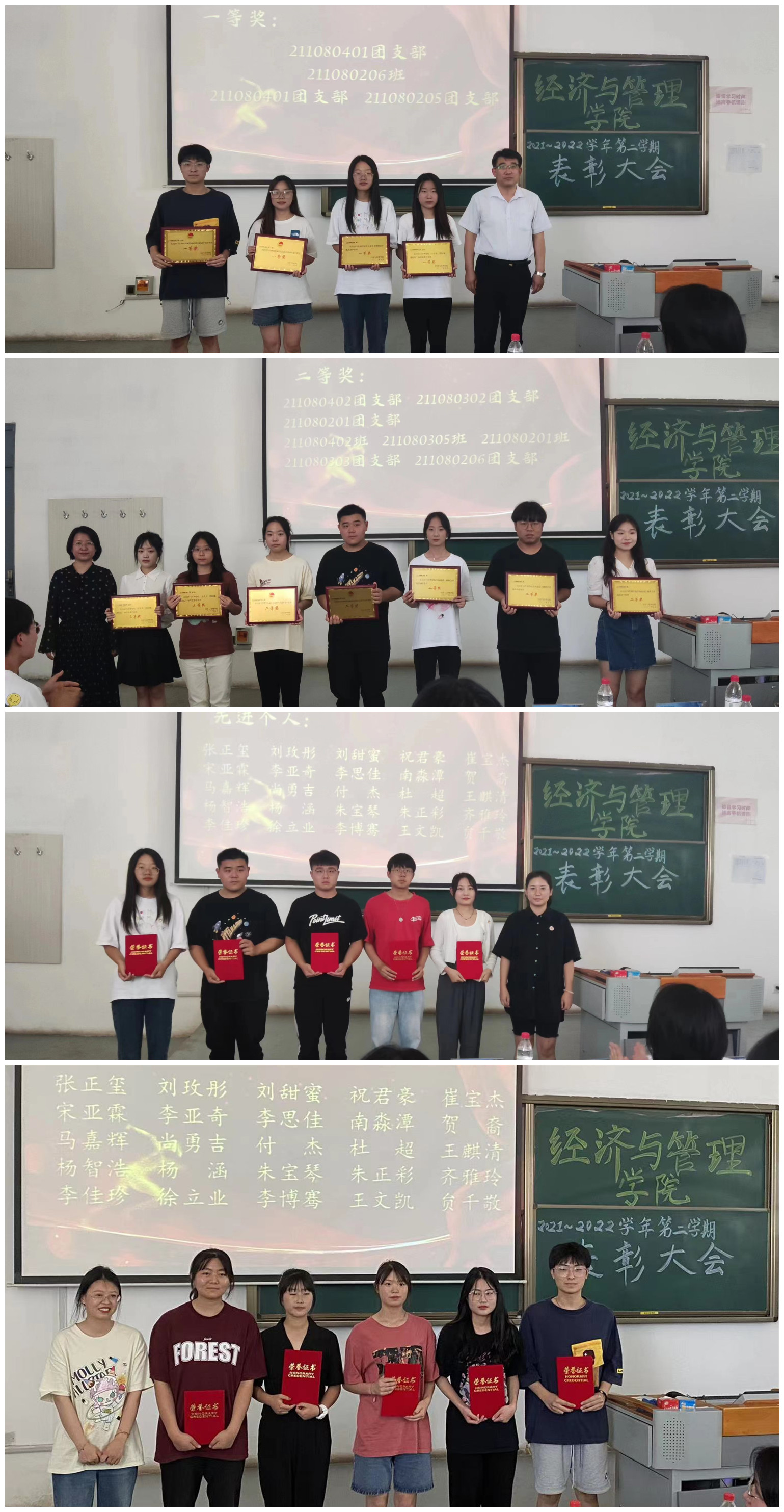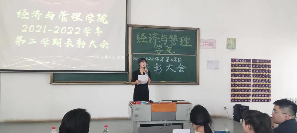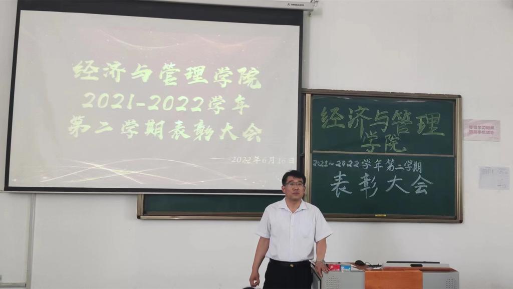 为进一步表彰先进、树立典型,激励我院广大同学向先进看齐,勇于担当、敢于作为,在今后的学习生活中积极进取、奋勇争先,经济与管理学院于6月16日下午,召开2021-2022学年第二学期表彰大会,对表现突出的集体和个人进行表彰。经济与管理党务临时负责人、办公室负责人、教学秘书、辅导员及学院部分教师出席活动,受表彰学生及部分团学干部参加此次大会。