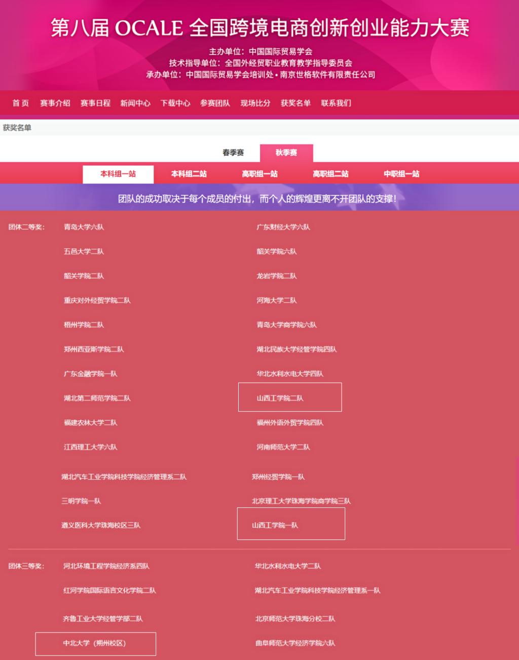 为贯彻教育部“以能力和职业发展为导向”的新兴人才培养要求,引导和培养学生创新精神和实践能力,促进人才培养质量全面提升。我院在开展院级“跨境电商创新创业能力大赛”的基础上,将院级一等奖的三支团队推荐参加“第八届OCALE全国跨境电商创新创业能力大赛(秋季赛)”。该赛于2022年11月18日正式结束,我院推荐的三支队伍均表现优异,其中由胡宇晗、卫晓峰、张超逸组成的yh86银河国际一队和曹换换、张子璇、卢思容组成的学院二队获得团体二等奖;王嘉磊、李玉竹、刘利华组成的中北大学(朔州校区)获得团体三等奖!