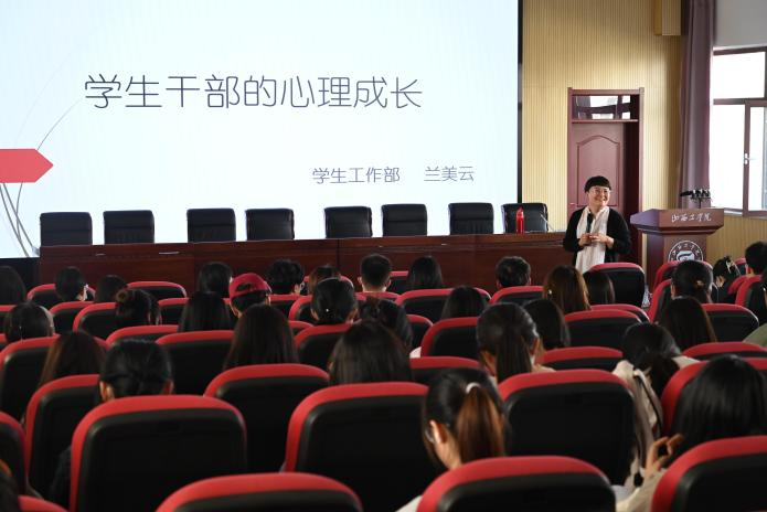 此次讲座,兰美云老师主要围绕“学生干部心理素质”这一主题,向同学们讲述学生干部的角色定位、心理成长、心理资本及学生干部工作职责等重要内容,指导学生干部做好本职工作的同时注重心理素质的成长,做到自知、自助、知人。