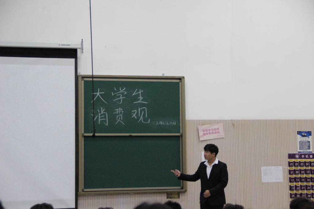 本次周末大讲堂,王洪利同学从教育、饮食、购物、娱乐、通讯等消费方面具体讲述大学生当下的消费观,并讲解正确消费观的概念以及如何确立正确的消费观,以此和同学们进行交流、互动与讨论。
