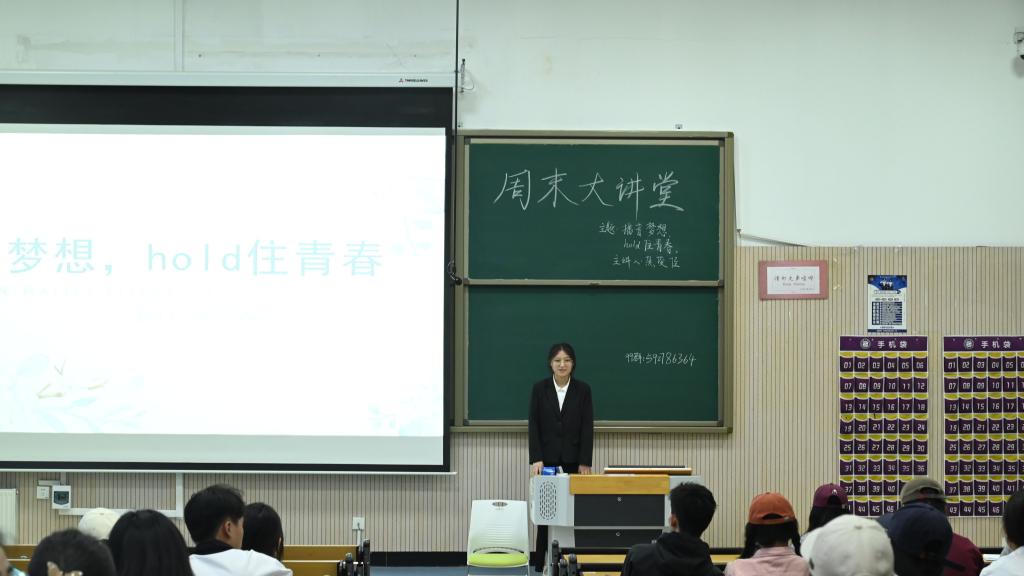 为了让同学们进一步了解自己的梦想,追逐梦想,丰富同学们的内心世界,更好地掌握自己的青春,用行动实现梦想。经济管理学院于2023年5月14日下午在笃学楼D202举行以“播音梦想,hold住青春”为主题的周末大讲堂活动,本次活动由2021级焦俊佳同学主讲,我院百余名同学参加。