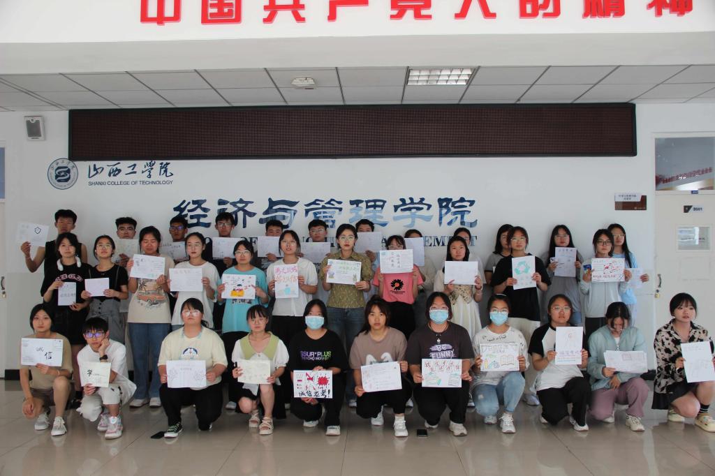 活动中,志愿者统一在明学楼B203进行签到。活动分两场进行,第一场活动志愿者们负责绘制写有同学们对考试的建议和诚信考试的倡议的宣传海报。第二场活动志愿者在校内各个地方向每个同学宣传讲解海报上的内容,积极动员大家诚信考试,拒绝考试舞弊。最后全体志愿者在经济与管理学院标识下进行合影留念。