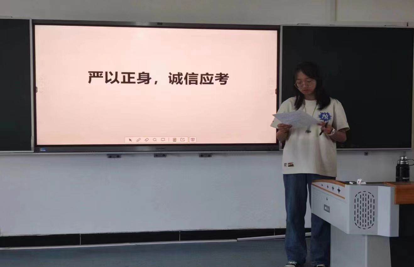 为全面落实立德树人根本任务,大力弘扬诚实守信的中华传统美德,践行社会主义核心价值观,进一步加强学风建设,严肃考风考纪,端正学生考试态度,杜绝考试作弊现象的发生,在期末考试即将来临之际,经济与管理学院各班级组织召开了“严己正身 诚信应考”诚信教育主题班会。