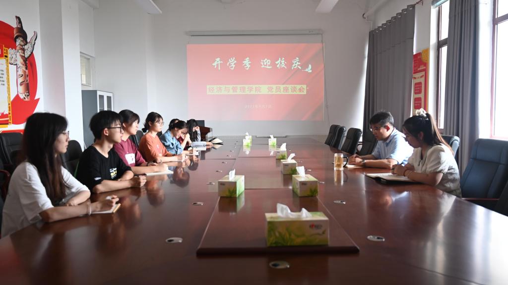 为深入了解学生党员的思想状况、加强学院与学生党员之间的沟通交流、提高学生党员的综合能力,切实在以学铸魂、以学增智、以学正风、以学促干上见行动、务实效,2023年9月7日,经济管理学院组织召开“开学季 迎校庆——经济与管理学院党员座谈会”,学院党务临时负责人,辅导员以及我院全体学生党员参加了本次座谈会。