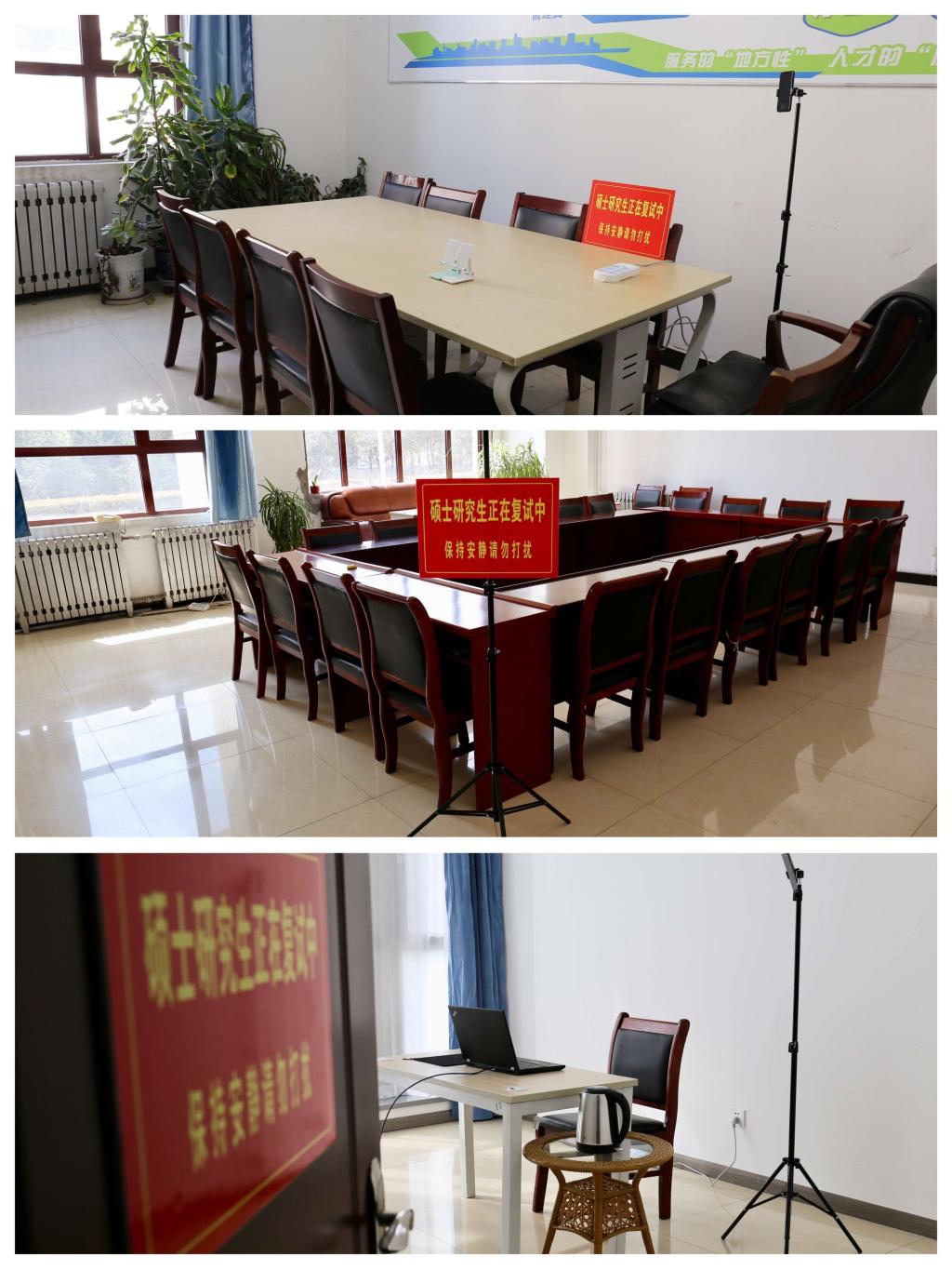 一直以来,我校高度重视学风建设,校领导多次强调要做好考研全程服务工作。考研前期,我校协调各部门为考研学生开放考研自习室,提供良好备考环境。考研期间,我校安排6辆爱心送考车,护送考研学生安全往返。2022年全国硕士研究生招生考试国家线公布后,我校急学生所急,想学生所想,积极解决复试硬件设备和环境问题,提前布置会议室,调整通讯设备,提供治学楼102、103、104和219四个办公室作为考研复试室,精心准备桌椅、插线板、三脚架、网线、手机支架、网线等设备供学生使用,并在走廊内及房间门口张贴“硕士研究生正在复试中”“请保持安静”“请勿打扰”等温馨提示标语,尽最大努力为考研学生复试保驾护航。