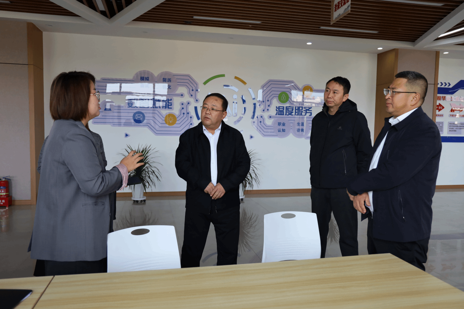 调研过程中,孙刚详细介绍了学校的办学理念、发展历程、师资力量、人才培养模式以及近年来就业创业工作亮点等。他指出,我校始终坚持秉承“立足山西 面向全国 做好朔州的事情”的办学理念,积极探索“高校+产业研究院+龙头企业/行业”的特色发展模式,致力于培养适应地方经济与社会发展需要的“厚基础、强实践、敢创新”具有较强学习力、思辨力和行动力的高素质应用型人才。他强调,我校就业创业工作坚持以服务学生为中心,提供能力培训、政策推送、岗位推介、创业孵化、权益保障等一站式就业创业服务。特别是将互联网、大数据、人工智能等就创业指导服务新技术与生涯体验、职业测评、模拟面试、简历诊断、手续办理、就业咨询、创业孵化等进行深度融合,以“线上+线下”的就业创业指导服务新模式,为学生提供全员、全过程、全方位就业创业服务。