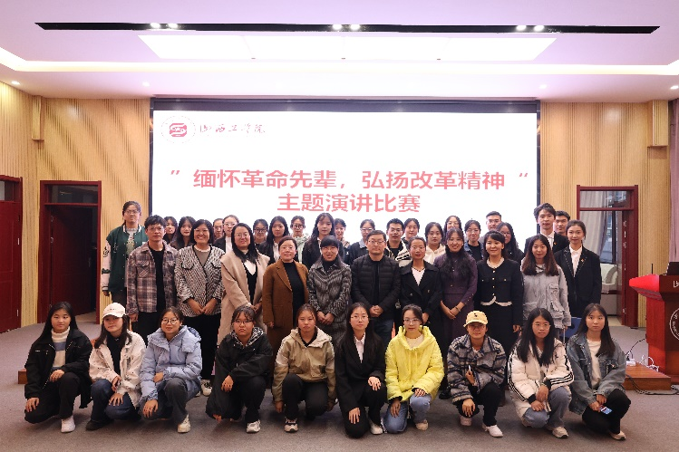 为纪念毛泽东同志诞辰130周年、抗美援朝战争胜利70周年以及庆祝改革开放45周年,马克思主义研学社于2023年11月6日下午15时在治学楼学术报告厅组织“缅怀革命先辈,弘扬改革精神”主题演讲比赛,思政部全体教师出席此次大赛并担任评委。